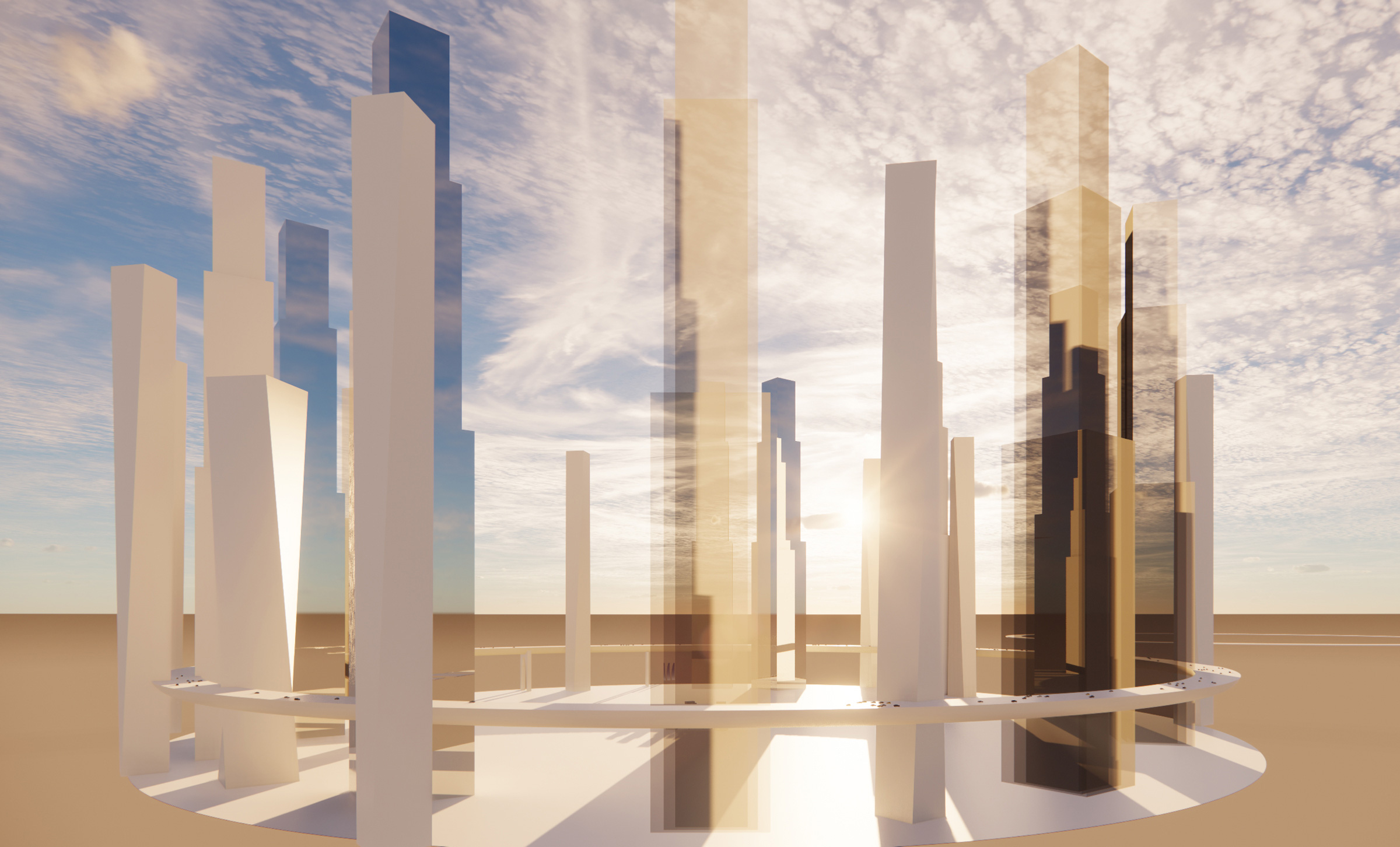 So imagine the picture of futuristic progressive, very green, quiet and clean city with a clean air. Skyscrapers with installed artificial
