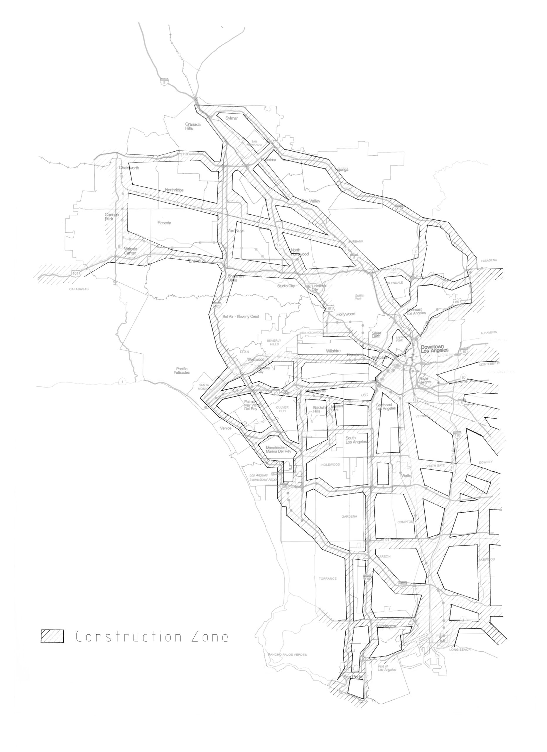 Diagram application on the Map of LA with consideration of excising Freeway veins. Each set of circle embed into between major roads.